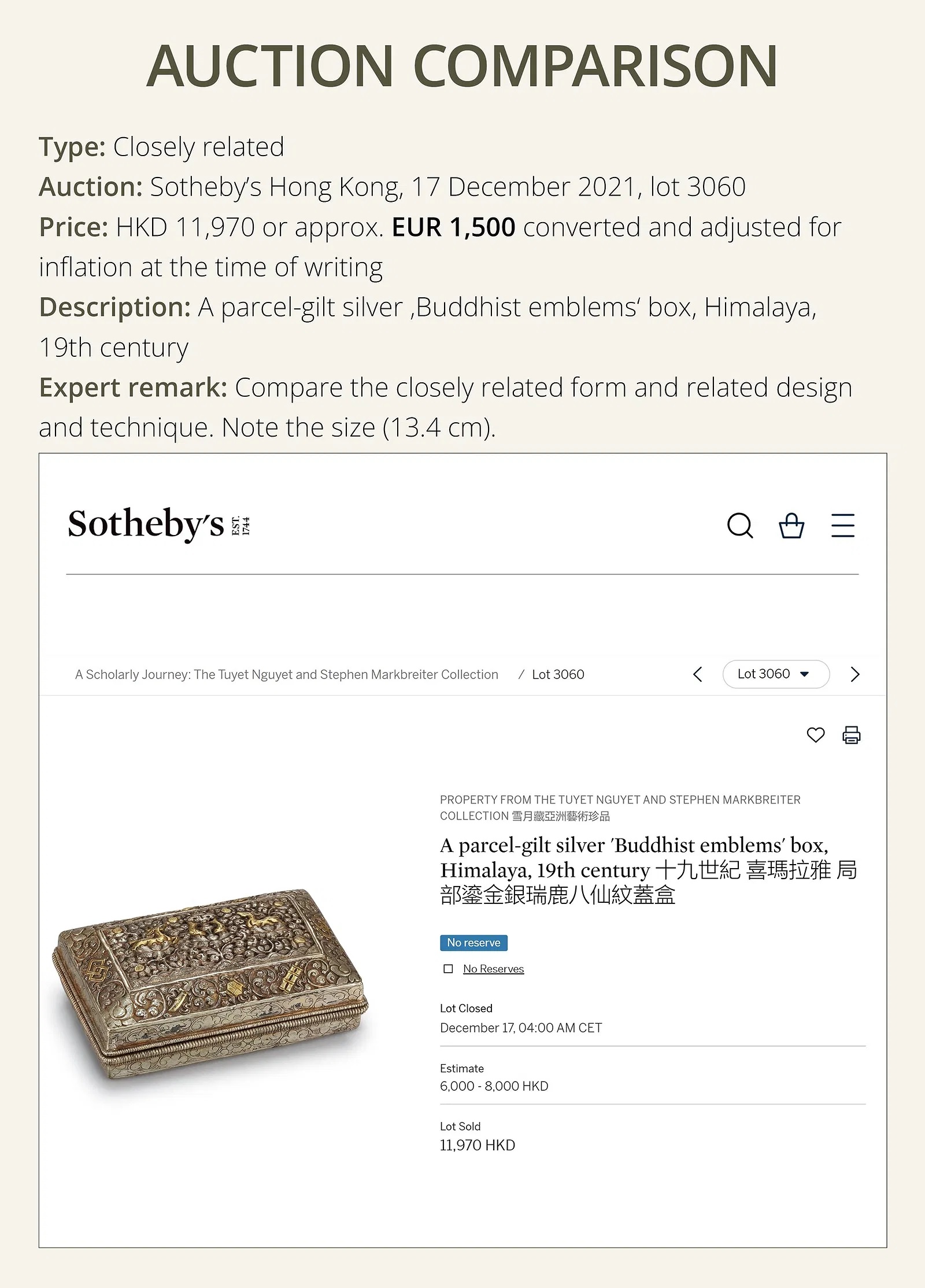 Beautiful antique Bhutanese doma and chaka silver and gilt box